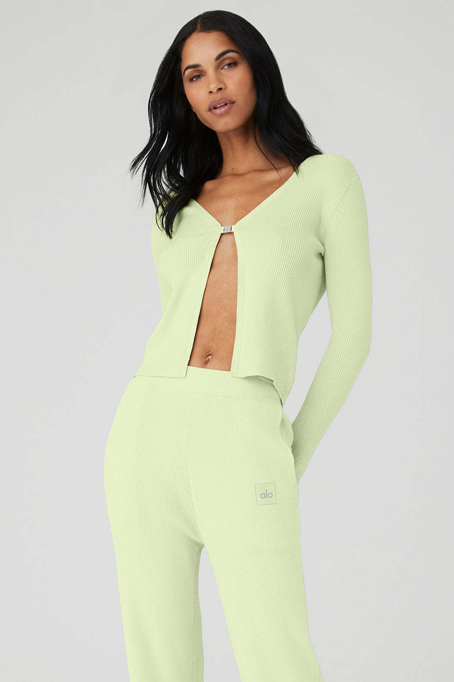 So effortless and forward. The Knit Salana Cardigan is made with an ultra-soft and super-fine ribbed knit fabrication, a single closure at the bust, and a full-length design. Pair it up with the matching Knit High-Waist Salana Wide Leg Pant or flared leggings.