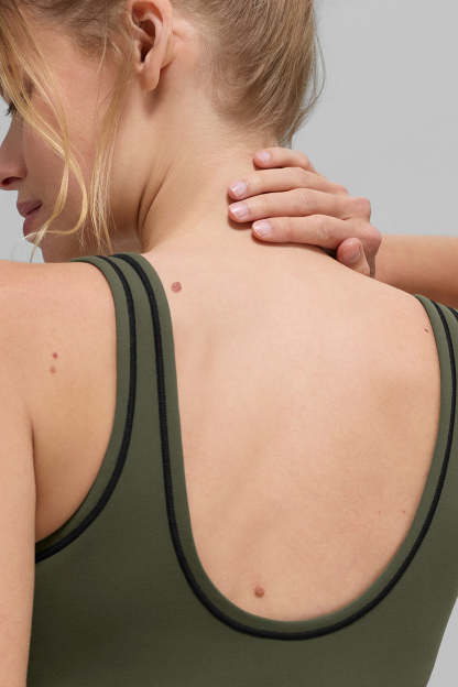 Scoop neck \u0026 low backSignature smoothing Airbrush fabric