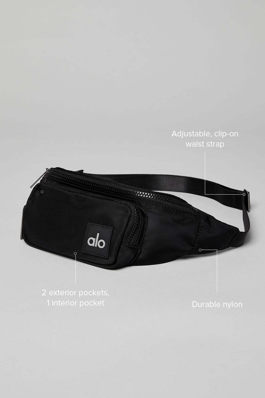 One and done. Keep your on-the-go essentials at the ready with the Explorer Fanny Pack, featuring zip pockets inside and out and a soft, adjustable waist strap that unclips for easy fastening or wears slung over a shoulder. Sleek and street-ready in nylon with luxe gunmetal hardware.